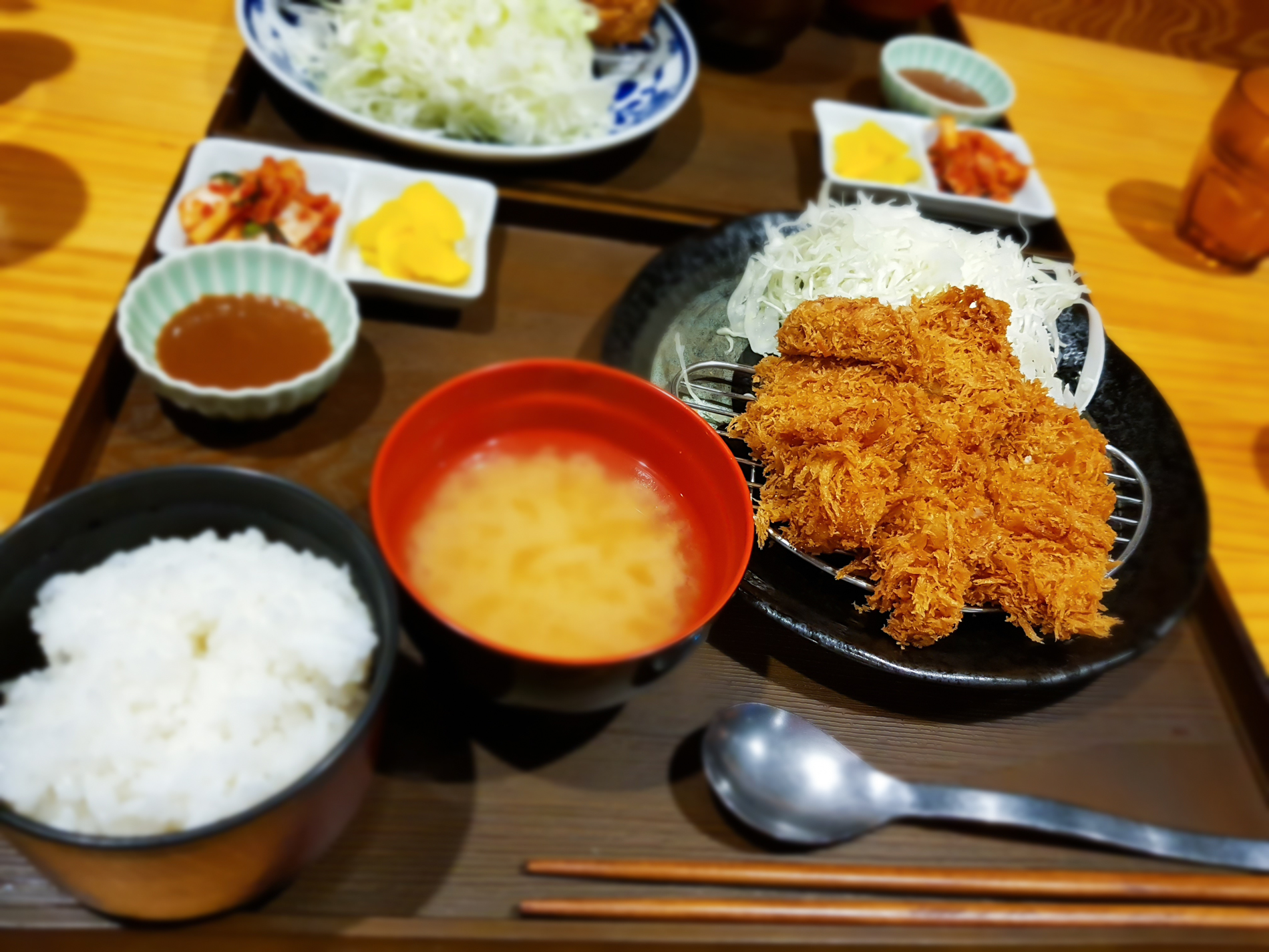 돈까스와 푸짐한 양배추, 장국으로 구성되어 있어요.