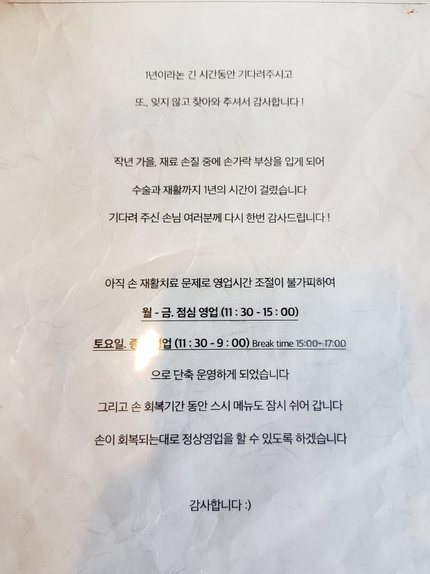 ▽ 11:30 - 21:00, 브레이크 타임, 일요일 휴무