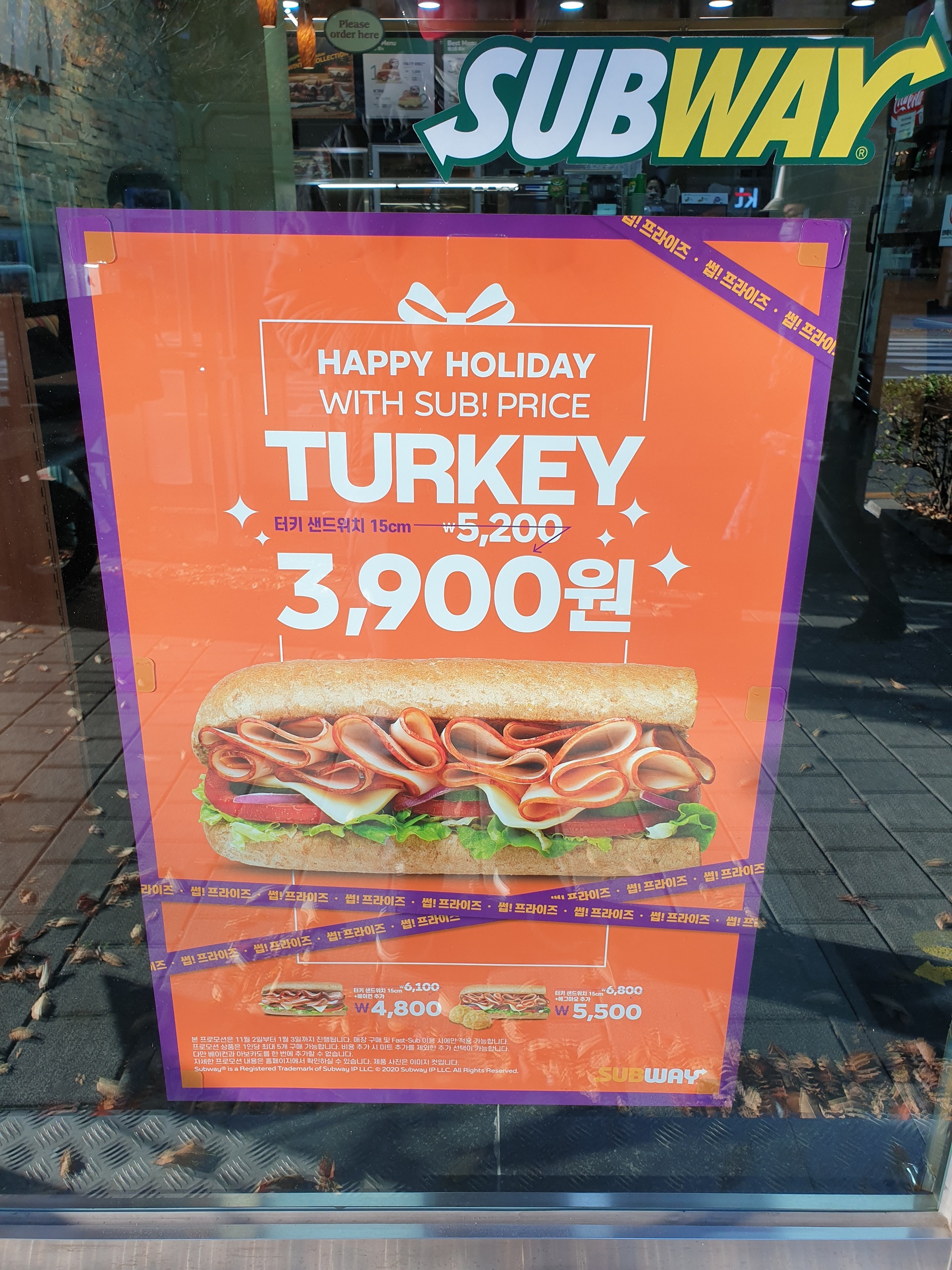 터키 샌드위치 15cm를 3,900원. 20%넘는 할인 가격으로 행사를 하더라구요.