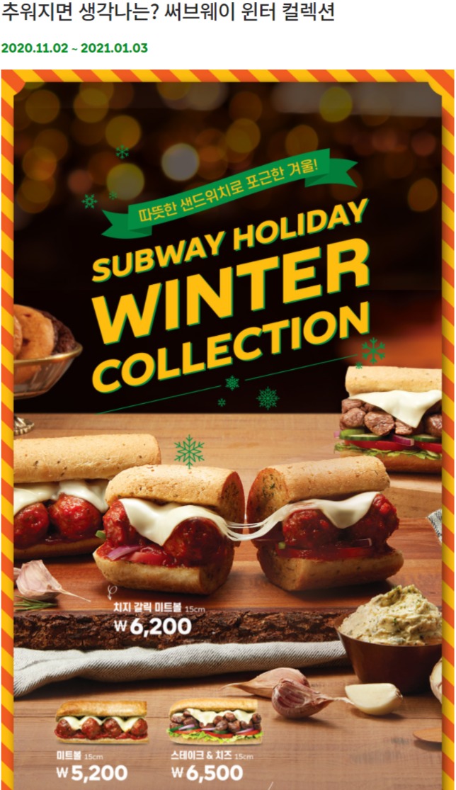 담번엔 써브웨이 윈터 컬렉션으로 도전 해보려구요!!!