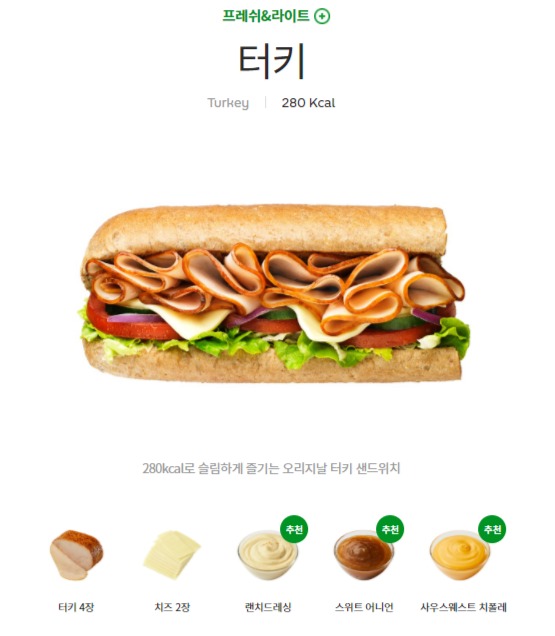 그리고 한가지 더 눈에 띄는게 칼로리. 터키는 칼로리가 280Kcal 이네요.