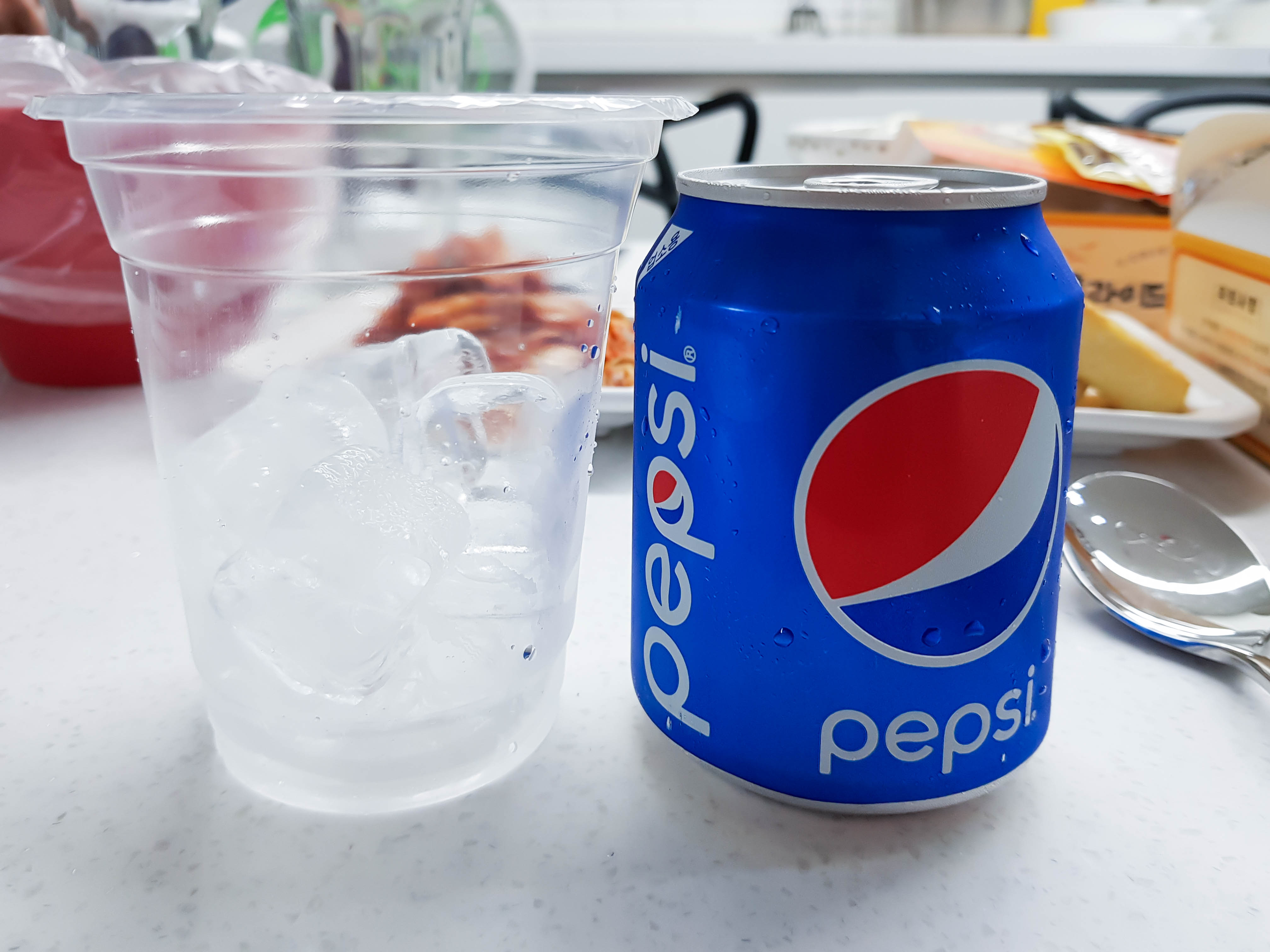 그리고 제가 많이 못 먹어봐서 그런지는 몰라도 콜라를 부어 먹을 수 있는 얼음잔을 주더라구요. 얼음잔 서비스는 아주 마음에 들었었습니다. 한 마리 반에 아주 작은 캔콜라 하나는 살짝 아쉬웠지만요. 얼음잔은 정말 좋은 아이디어인 거 같아요.
