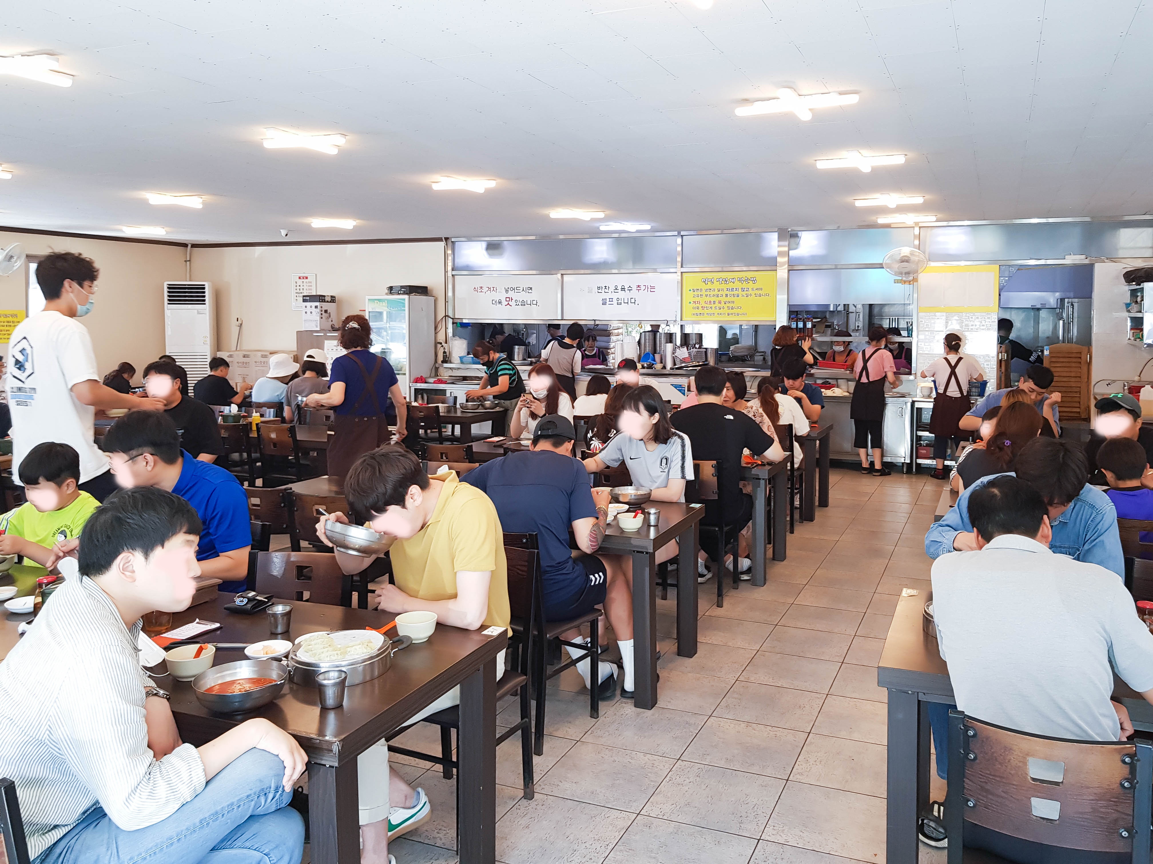 삼산동 밀면전문점은 넓은 주차장이 장점임. 주차장이 크지만 여름엔 손님이 많은 만큼 넓지만 주차가 쉽진 않음. 가게를 나가면 바로 맞은편에 공터도 밀면전문점 주차장으로 사용 중. 여름에 바쁠 땐 주차요원들이 다른 주차장까지도 안내를 해줌. 한창 더울 땐 점심시간엔 대기줄도 자주 보이지만 회전율이 높아서 대기가 많이 길진 않고 금방 자리로 안내받을 수 있음. 하지만 홀에 일하는 직원들도 너무 바빠서 적극적으로 내 자리를 찾지 않으면 종종 새치기도 당함. 적극적으로 내가 먼저다 어필을 하며 자리를 찾아서 앉아야 함.