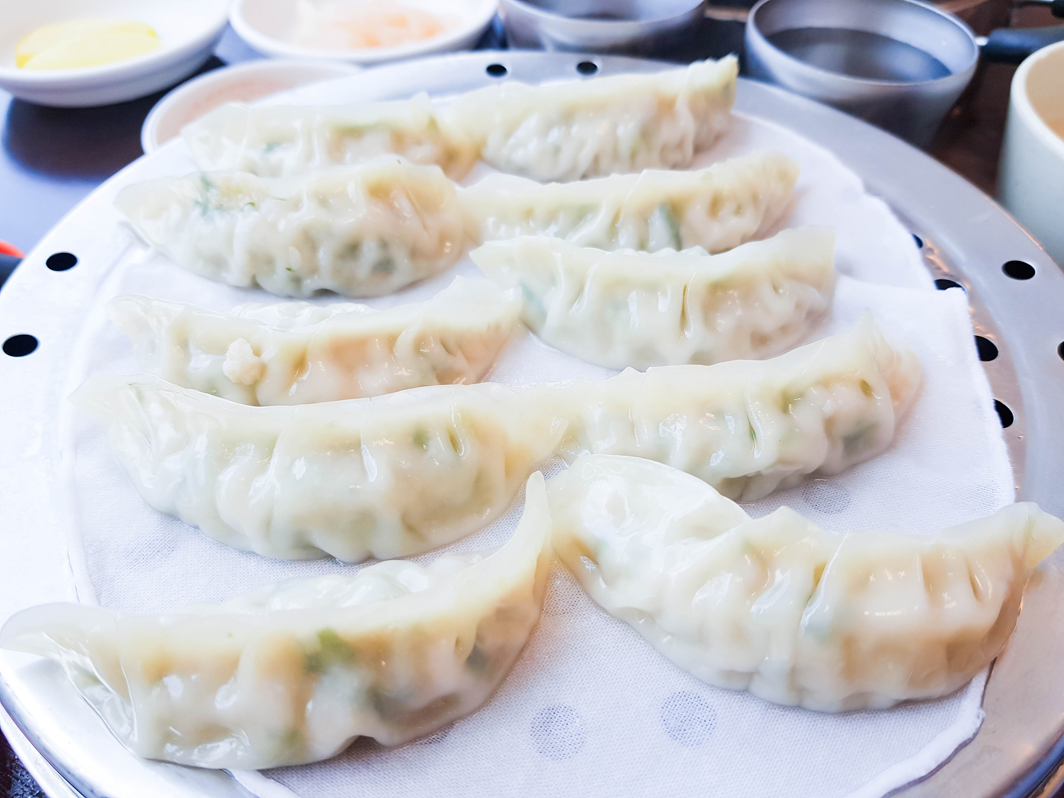 만두가 먼저 서빙됨. 만두 10개에 한판에 4,500원. 개인적으로 이곳 만두가 피가 얇고 쫀득쫀득 맛있어서 좋아함. 밀면보다 만두가 더 맛있는 거 같음. 밀면만 먹고 만두 못 먹으면 밀면 먹은 느낌이 안 날 정도.