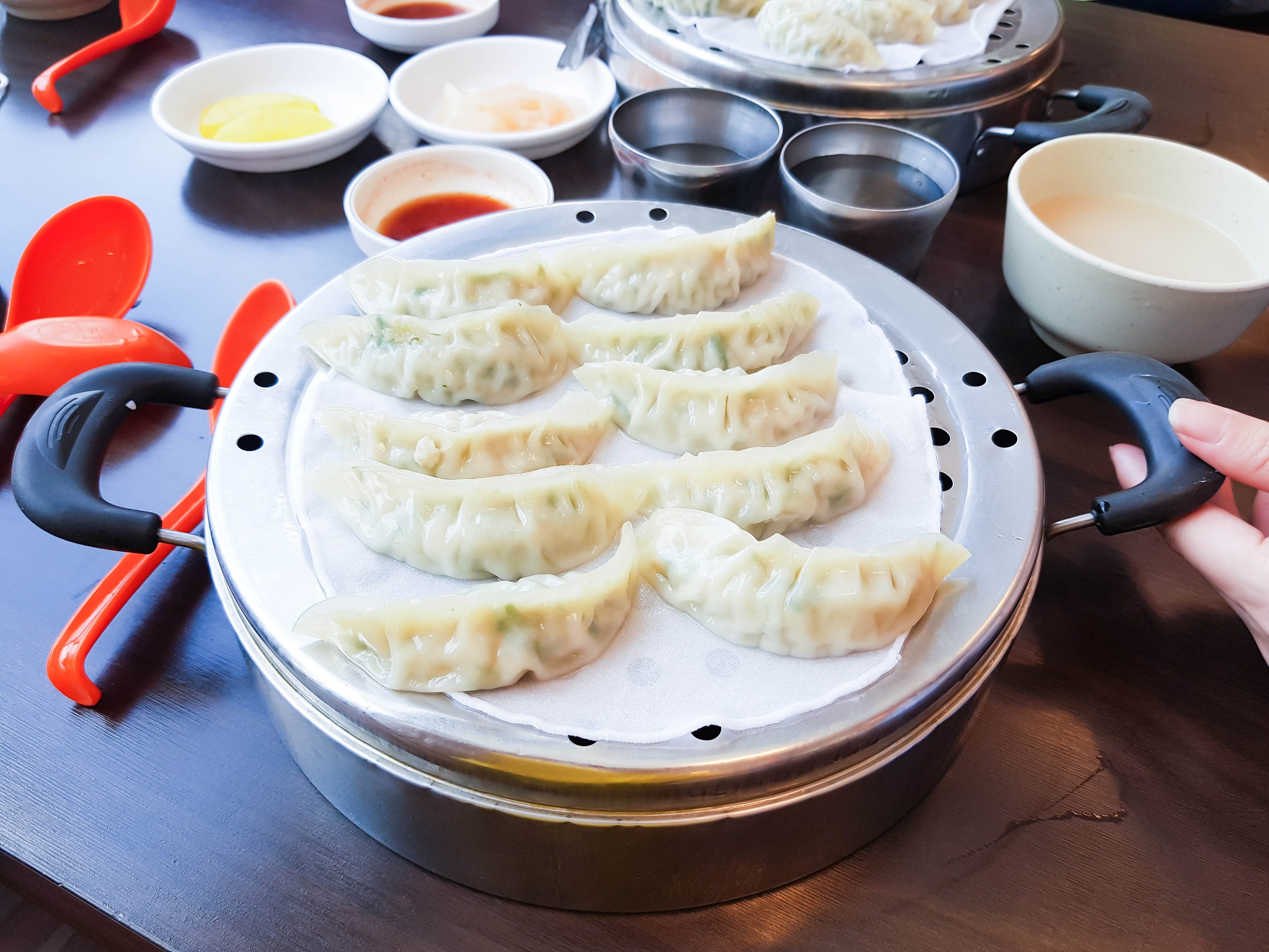 만두가 먼저 서빙됨. 만두 10개에 한판에 4,500원. 개인적으로 이곳 만두가 피가 얇고 쫀득쫀득 맛있어서 좋아함. 밀면보다 만두가 더 맛있는 거 같음. 밀면만 먹고 만두 못 먹으면 밀면 먹은 느낌이 안 날 정도.